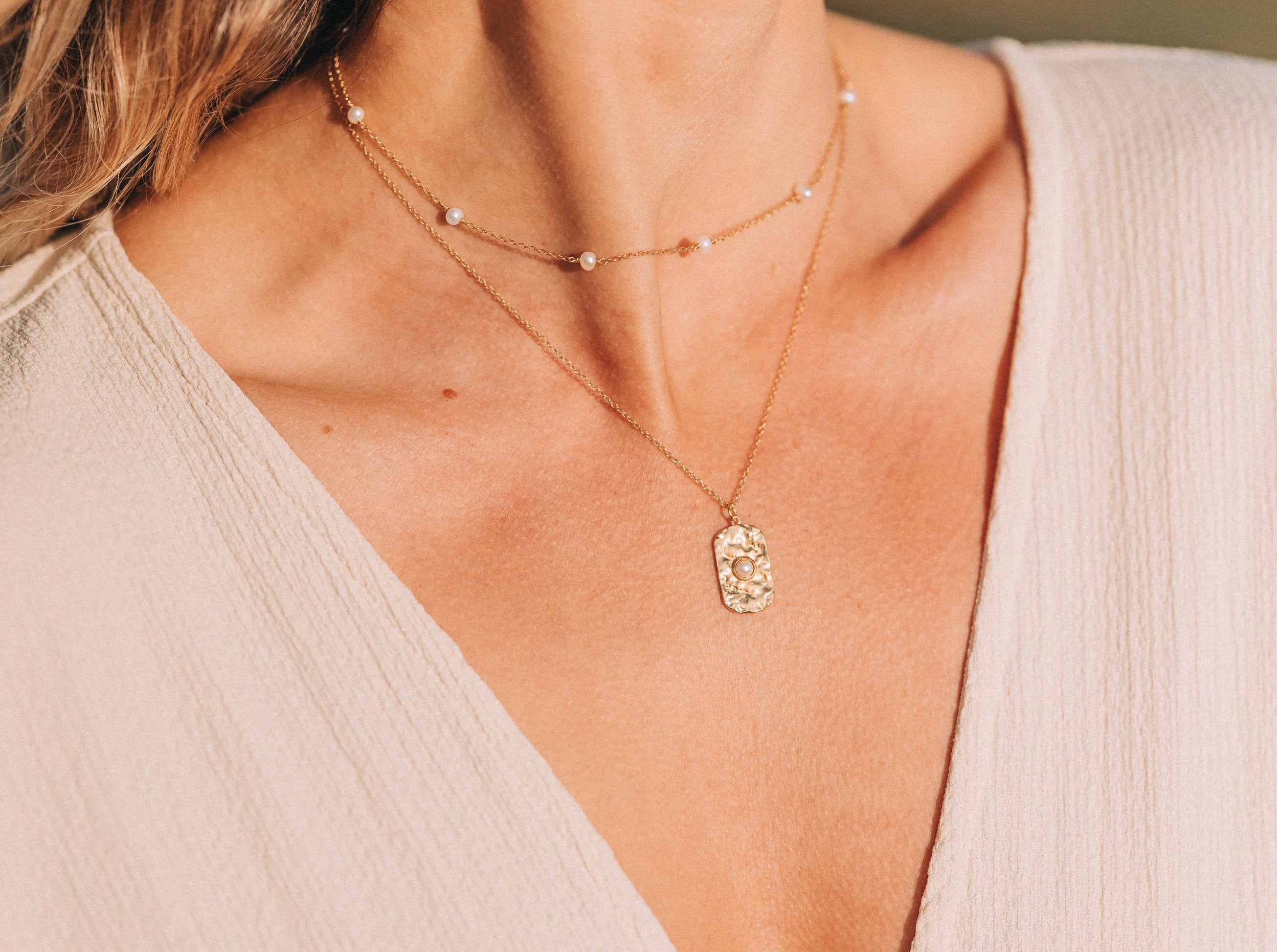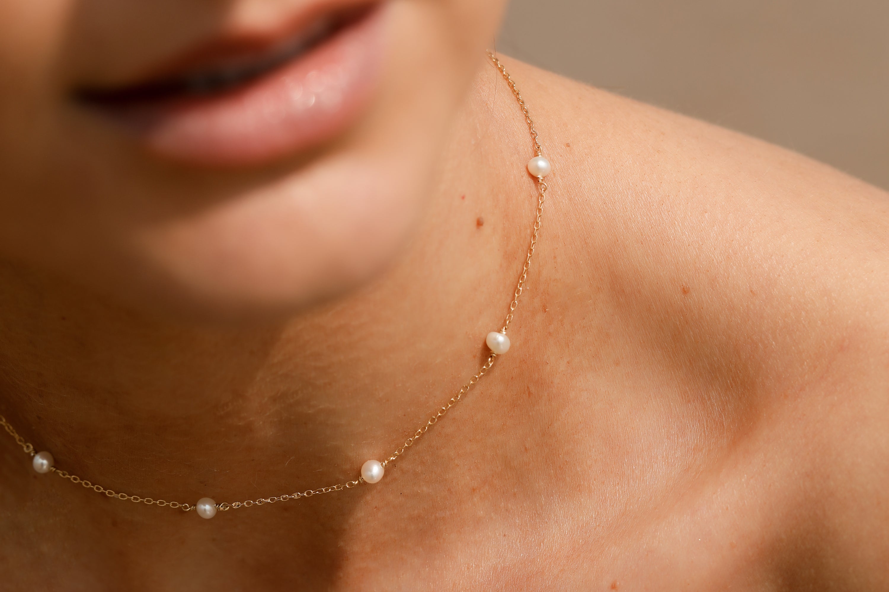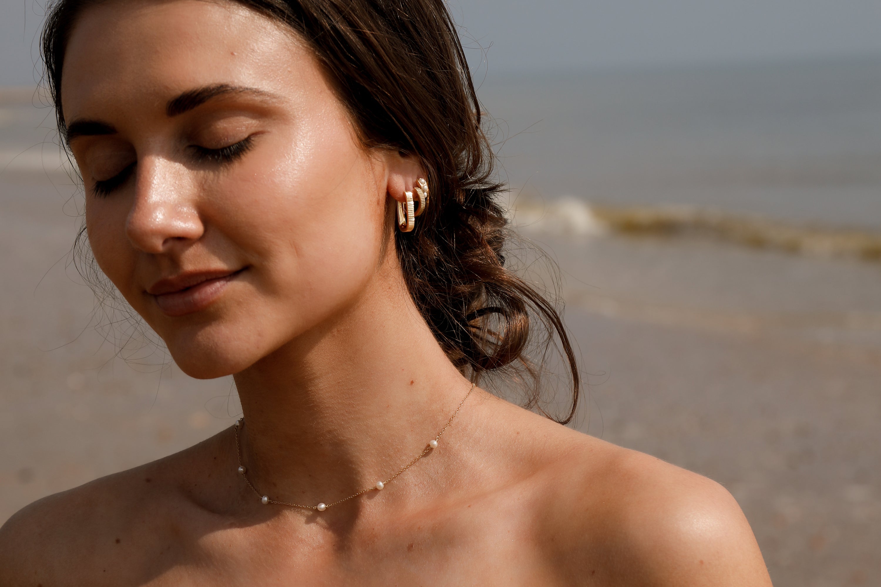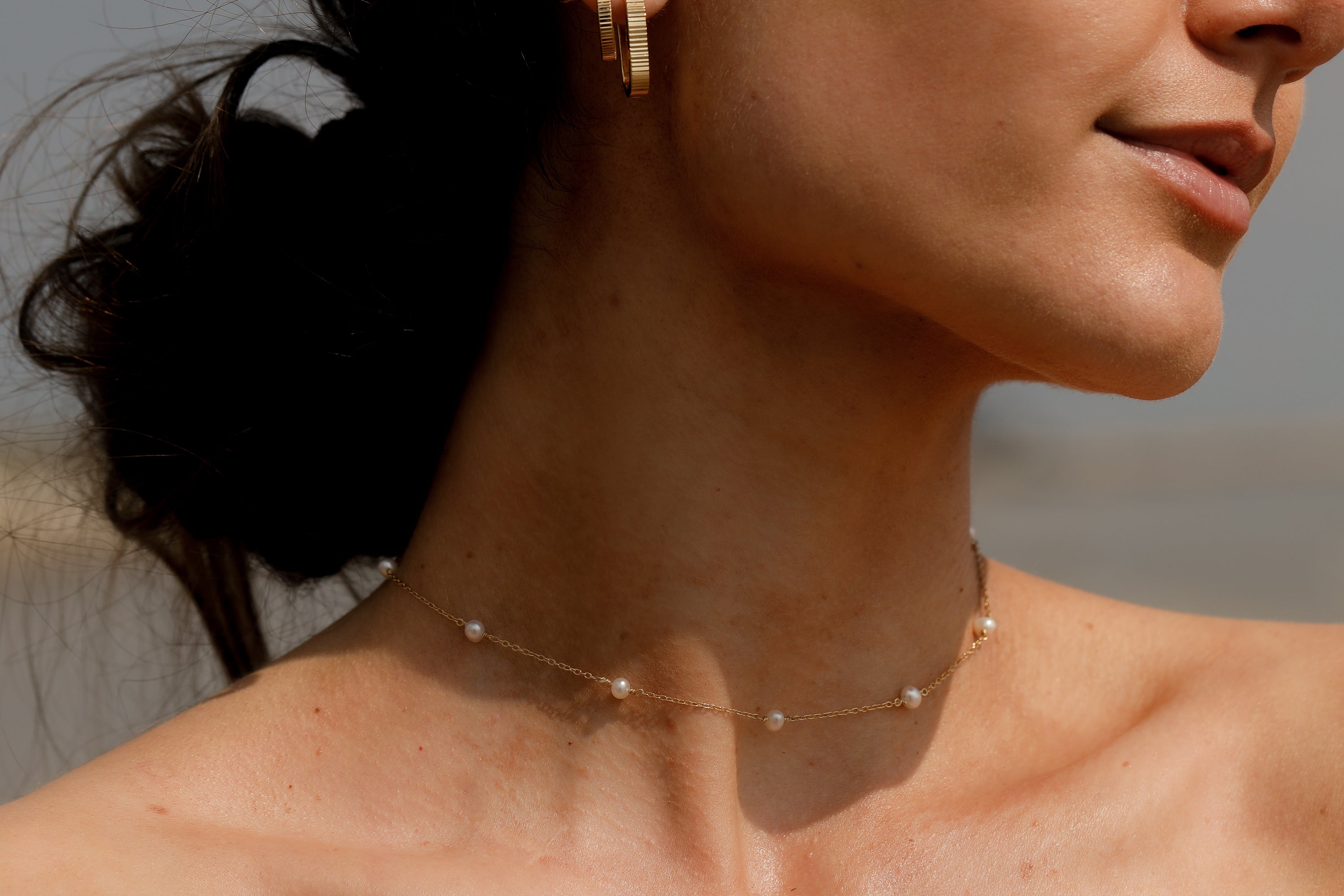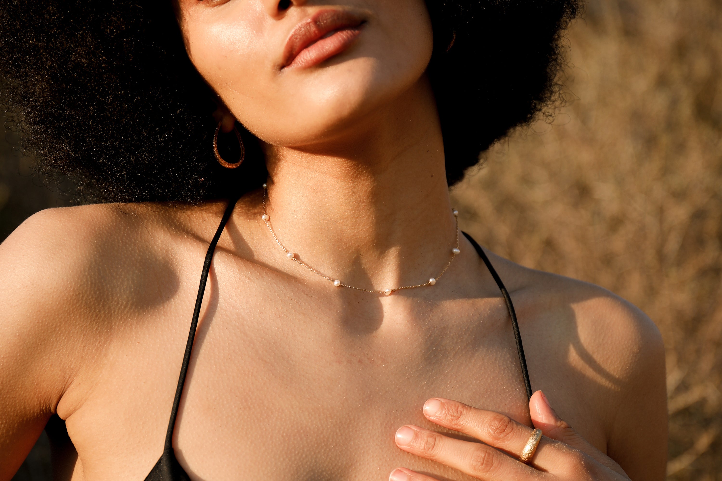 The Deep Dive Collection is inspired by the movement and flow of water and everything that can be found within its depths. The Pearl Choker honours both the power and grace of water. A chic and elegant choker necklace that is beautifully worn solo or stacked up with others.