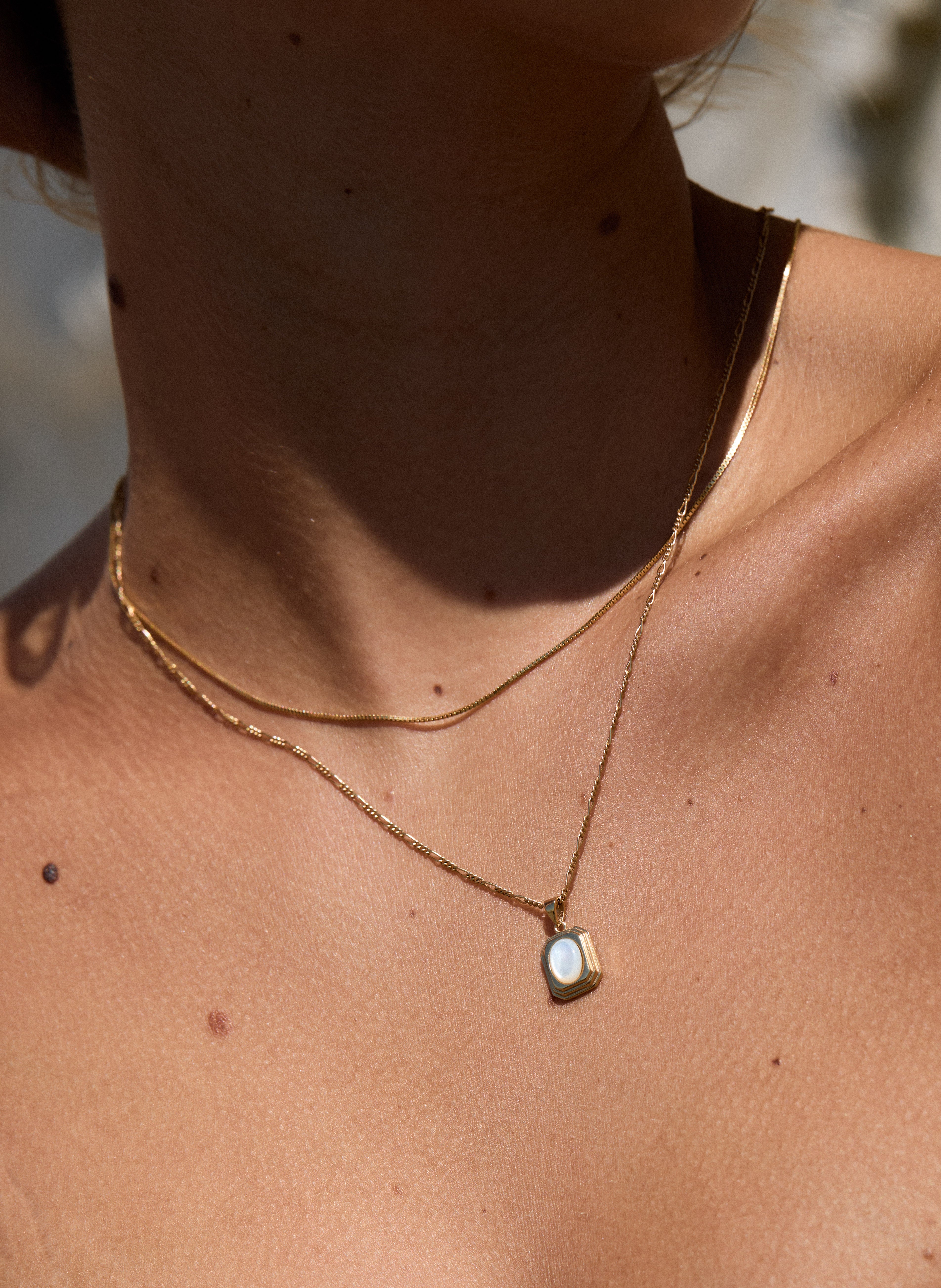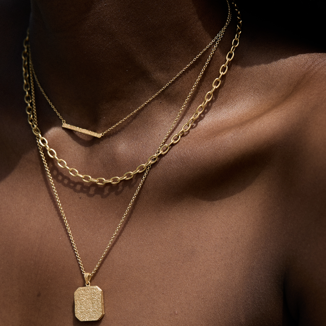 The key to creating the perfect stack is all about length. So try to leave about 2 inches between each necklace.