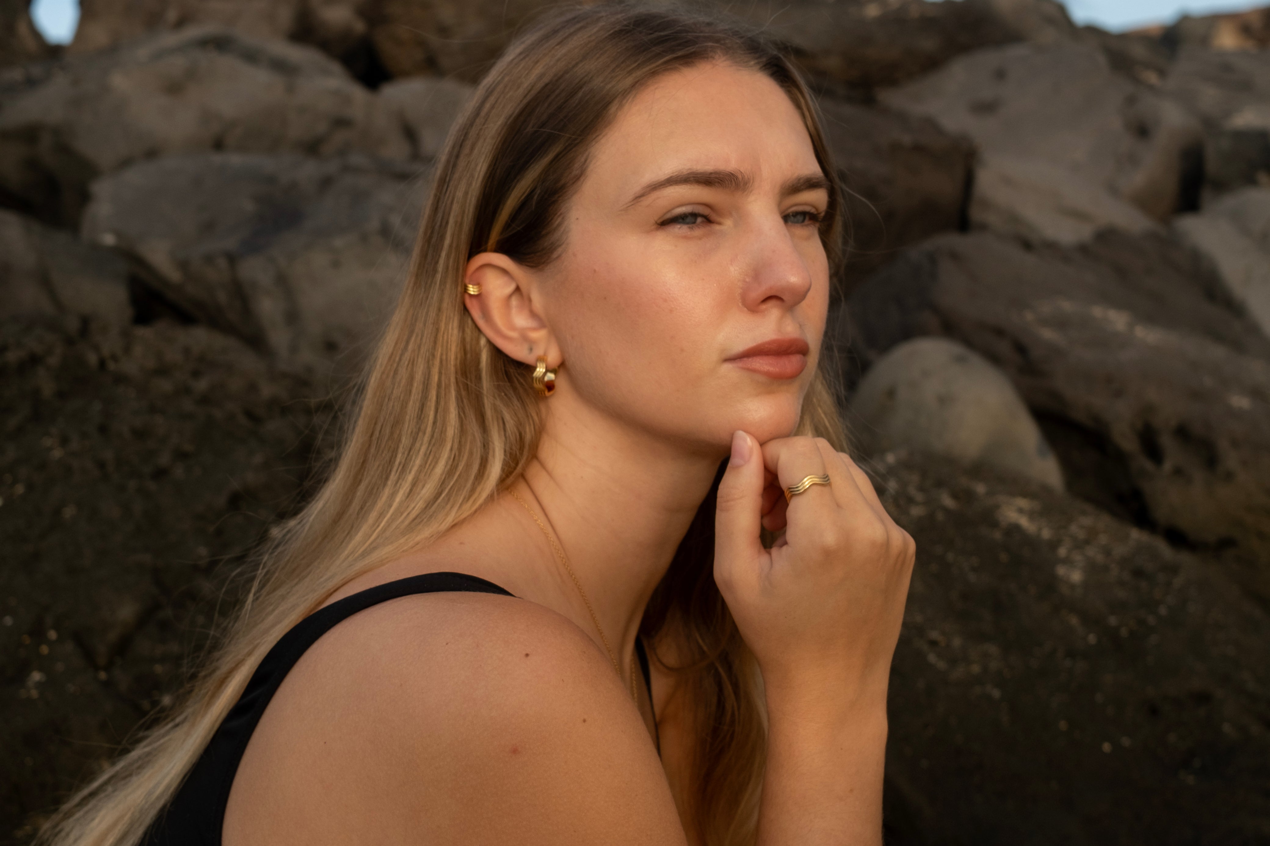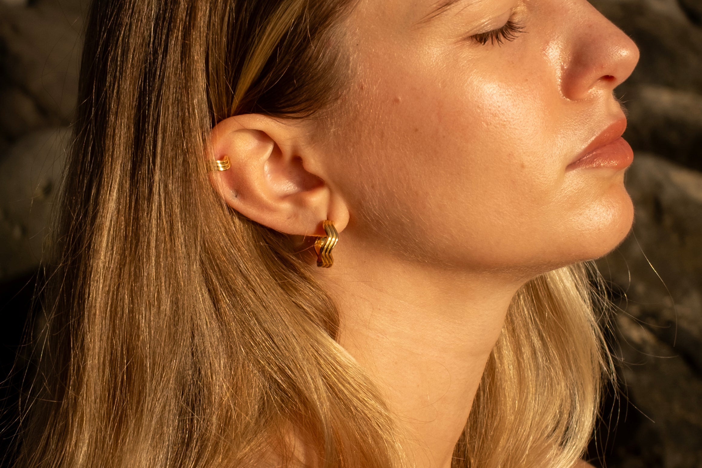 The Wave Ripple Chunky Hoops are inspired by the rolling curves of the ocean’s waves. They’re bold and beautiful. Created in a chunky style and built to be lightweight - designed to carry you from day to night with ease. A modern, timeless pair of hoops. A pocket of the ocean for your everyday.