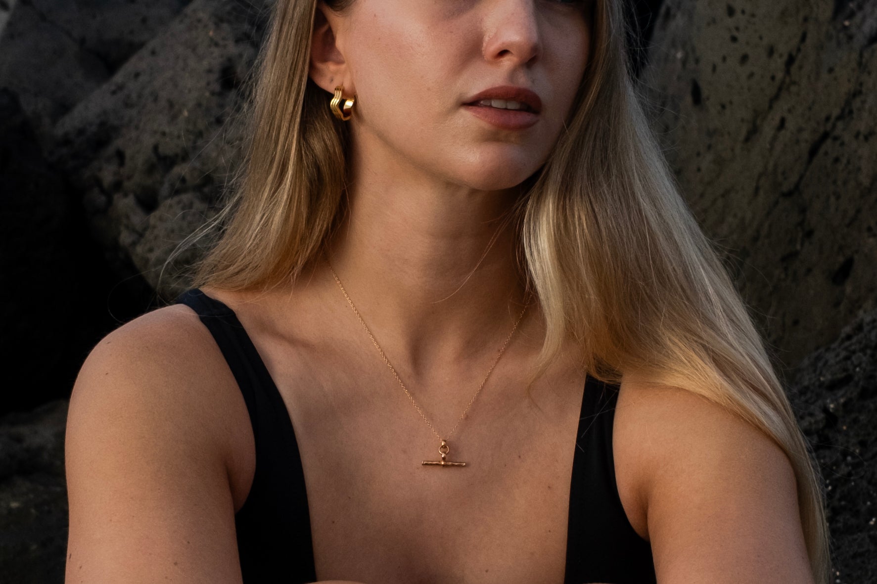 The Wave T Bar Necklace is a modern take on the classic shape. It symbolises balance and connection. Inspired by nature and created with a soft petal imprint for a naturally textured look. A lightweight, timeless, and easy to style necklace. A pocket of nature for your everyday.